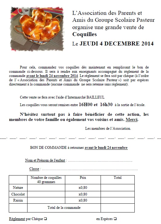 vente de coquilles JEUDI 4 DECEMBRE 2014